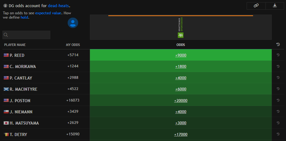 My odds shown below via the datagolf.com Custom Model tool