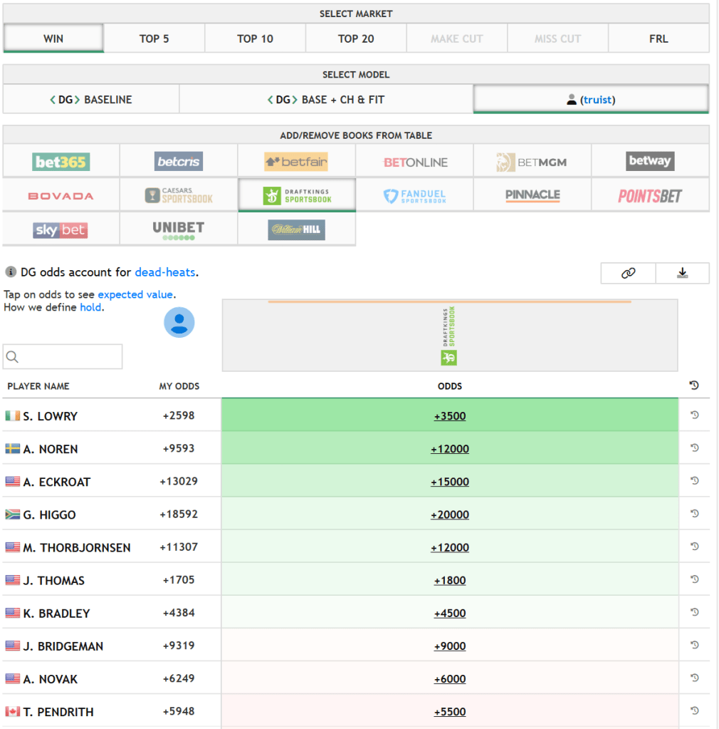 I did my own #research on TheGrint, and it feels like every hole has a bunker to carry about ~290 yards (just about TOUR average carry). If you can carry those, many holes can become birdie holes. If you can’t, you bring in a lot of hazards. Carry distance is not something I usually look at, but the rain in the area brings soft conditions and should allow bombers to both carry hazards AND hold fairways. Then will come spin control on many approaches around 150 yards.