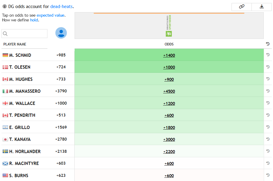 I don’t love where the value lies and the boost is mainly to guys with long DP World TOUR histories. Nothing yet… if I see any life of Jesper and a high number is hung, I’ll be on him LIVE.