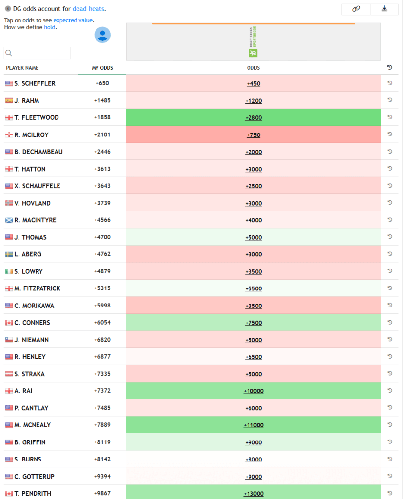 I really don’t love the value being screamed out at me this week well down the board. My numbers going into these odds may be over-inflating the DP World TOUR courses, which tend to provide more volatile adjustments.