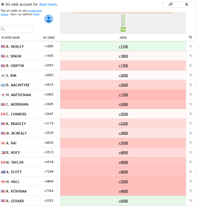 Transparency to the 4heads: I will not be betting Outright golfers at the rate I did last year (aggressively) given the current legislation related to non-fully-deductible gambling loses. I need to see full clarity from DraftKings in addressing this preposterous attempt by Congress to destroy the gambling ecosystem of which lobbyist have poured billions into and the public at-large has been referendummed to death on.