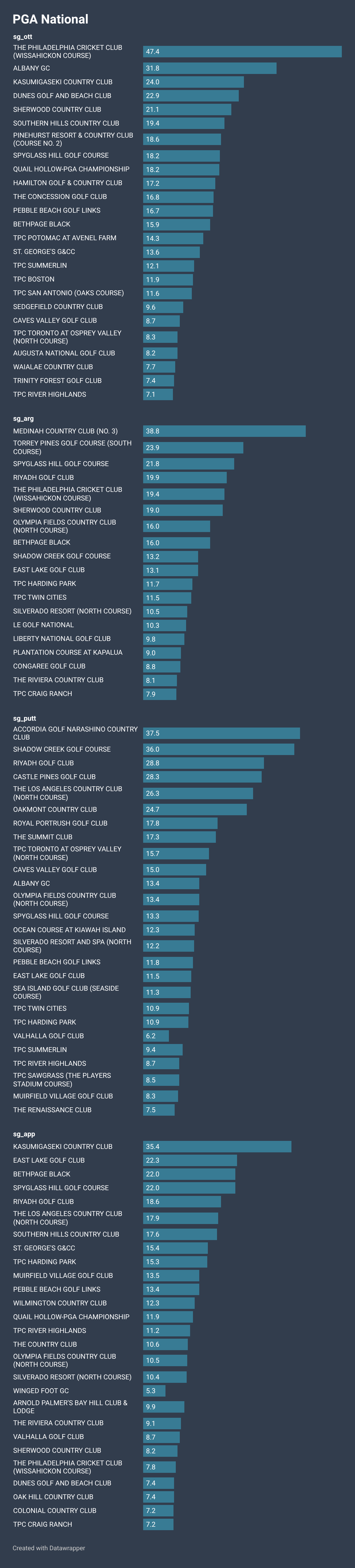 - Bermuda: Do not forget that the change in coasts comes with a change in greens. While out West, a number of guys were featured here week-over-week. Consider this a mini-reset as the Floridians get to shine.